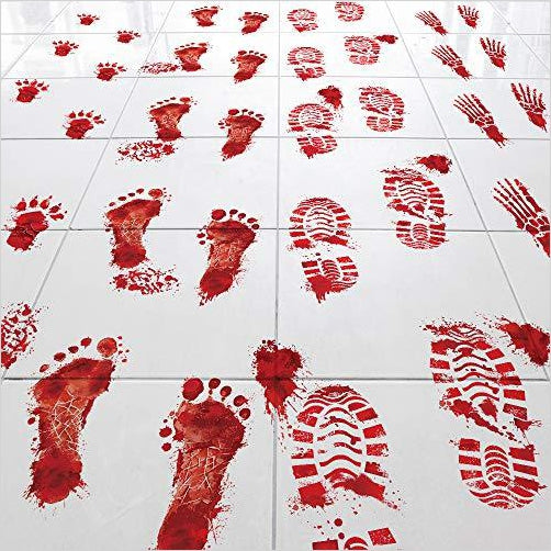 Bloody Footprints Floor Clings: Add a touch of mystery with 50 different footprints leading to... where exactly? This set is bound to send shivers up your guests' spines. Zombies? Werewolves? Who's the culprit?