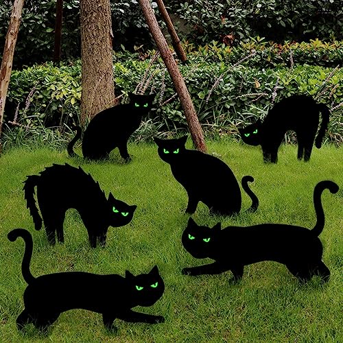 Glow-in-Dark Black Cat Yard Signs: Illuminate your yard with these mysterious black cat signs. Their glow-in-the-dark eyes pierce through the night, creating an enchanting yet eerie sight.