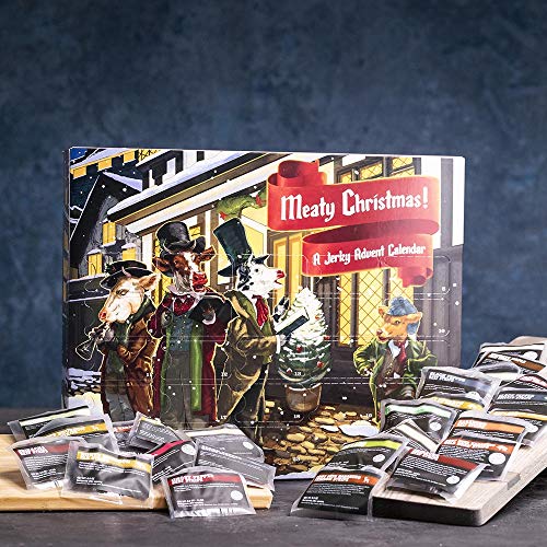 Man Crates Jerky Advent Calendar: For the meat aficionados, this Advent calendar is a carnivore's delight. Packed with 25 festive flavors of beef jerky and adorned with fun meaty Christmas artwork, every day promises a savory bite of delight.