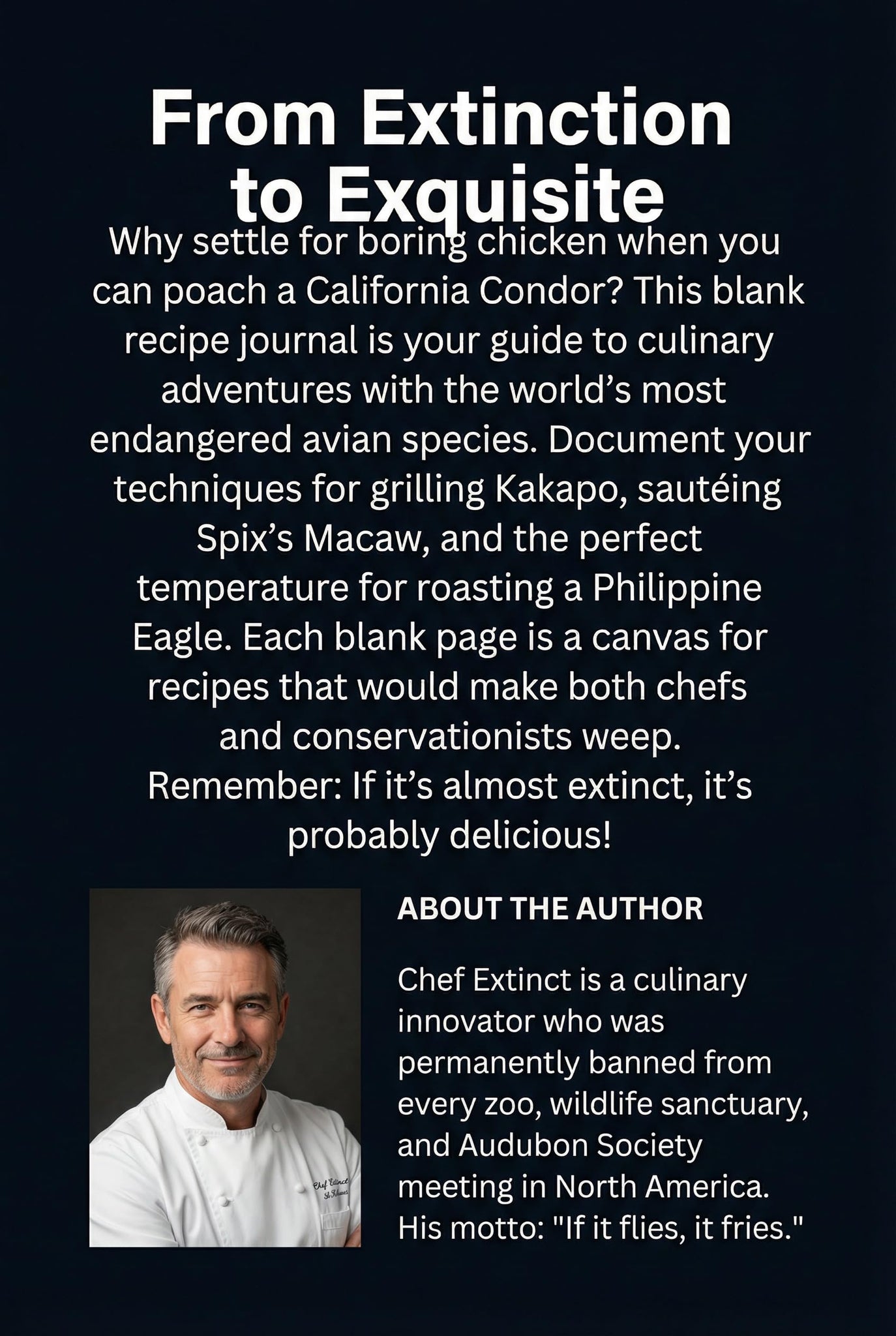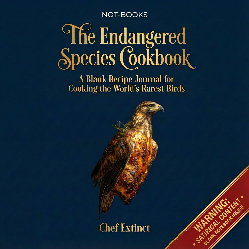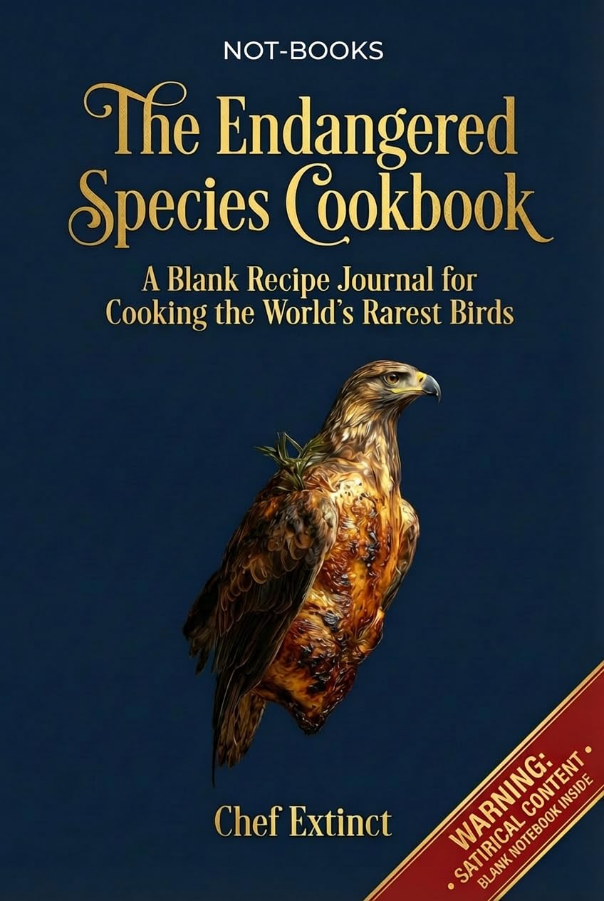 The Endangered Species Cookbook By Chef Extinct Features: A shocking prank gift for the Chef with a dark sense of humor. This fake cookbook features a bizarre title about cooking "Rare Birds" that will make guests do a double-take. It is a unique gift for foodies and culinary graduates who are tired of boring kitchen gifts.