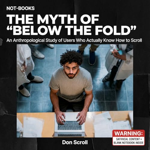 The Myth of Below the Fold: Funny UX Notebook Features: A classic web design joke turned into a physical gift. This fake research book is perfect for researchers, web designers, and developers who are tired of arguing about "the fold." A witty addition to any digital creative's desk, featuring 160 pages for sketching layouts and wireframes.