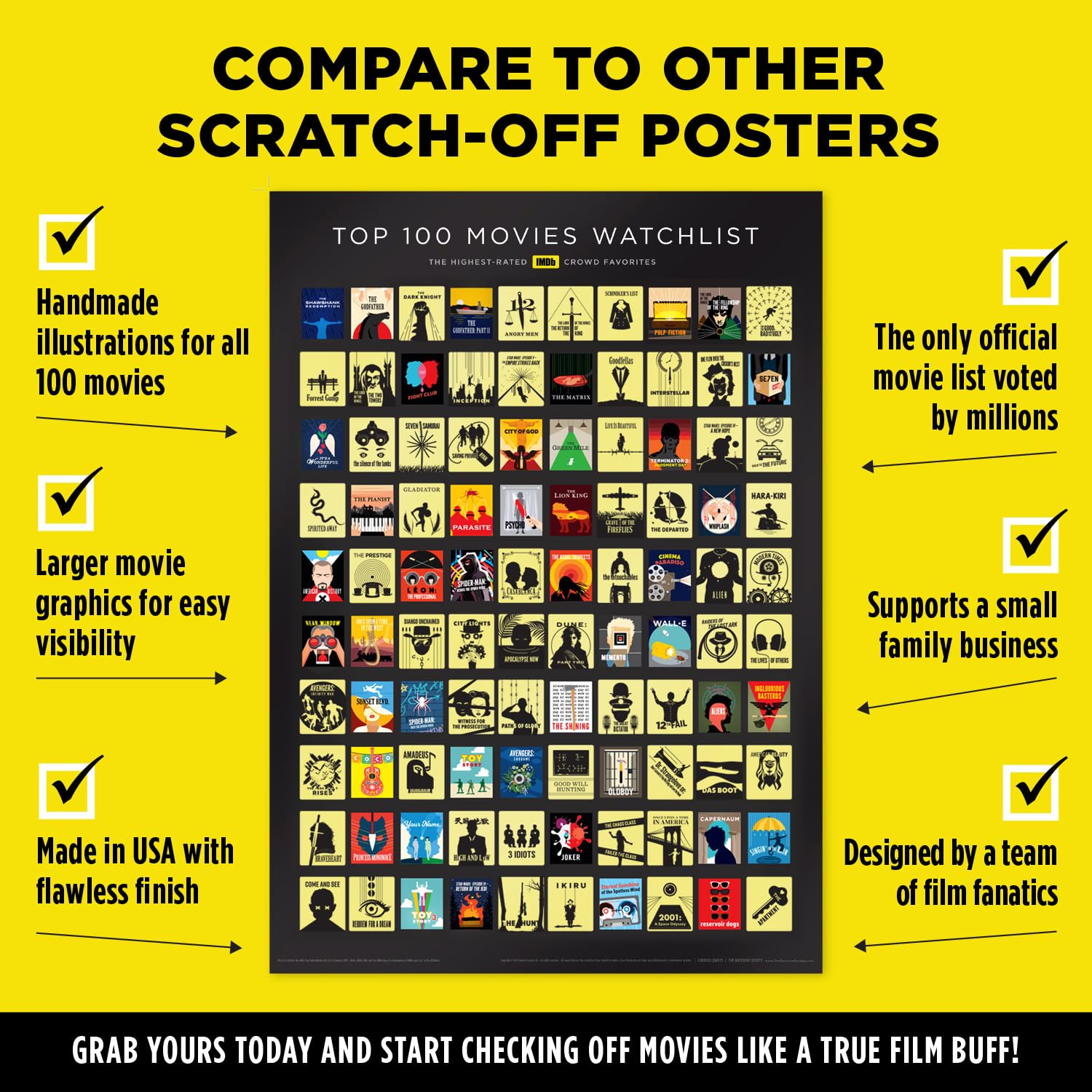 Celebrate cinema at home with the only Top 100 scratch-off poster officially licensed by IMDb. Each square reveals an original mini movie poster illustration, turning your watchlist into wall art as you scratch your way through the greatest films. Sized to fit standard A2 frames, it’s a stylish addition to a living room or home theater and a perfect present for film buffs, new grads, and families building a movie night tradition. If you’re after cool gifts with a personal challenge, this poster is a standout Christmas gift idea.